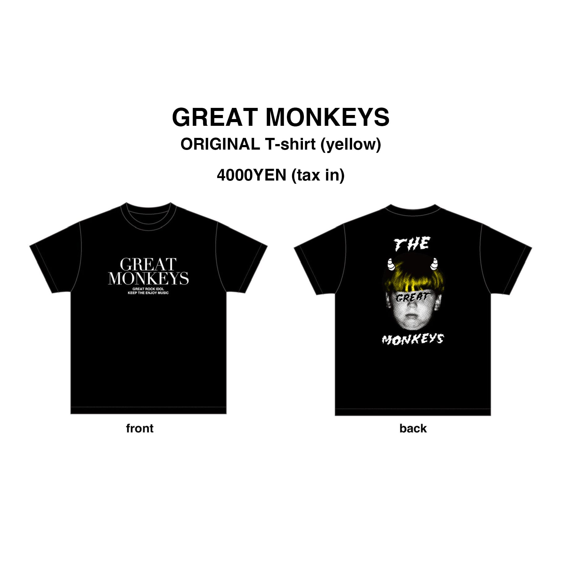 【4月18日・25日会場受け取り】GREAT MONKEYS オリジナルTシャツ(yellow)